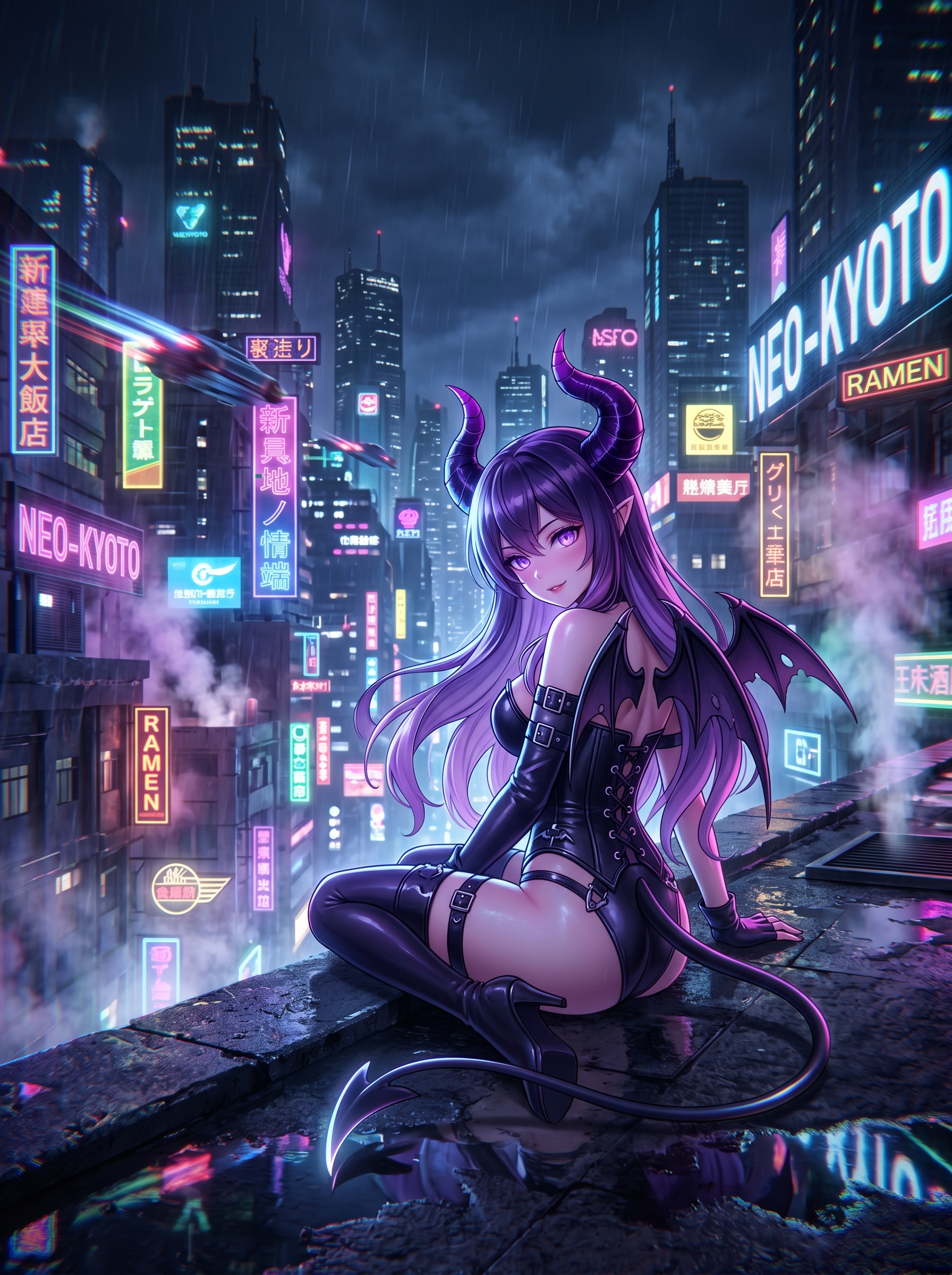 赛博朋克 — 霓虹色调、未来都市、强对比光线。非常适合科幻角色和编辑插画。